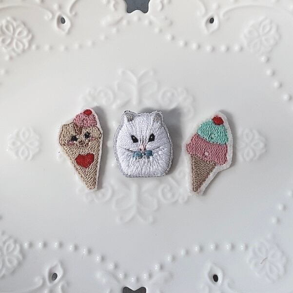 フェルトに刺繍されたミニサイズのアイスクリームです